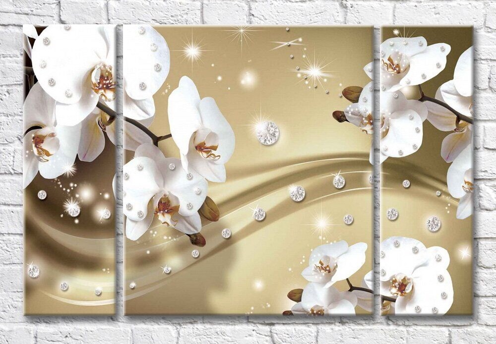 Картина Magic Color Orchids and rhinestones on a Golden background (3565165)