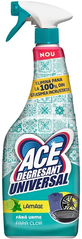 Универсальный спрей ACE Lemon 650 мл- это многофункциональное средство для уборки дома, подходящее для ванной, кухни и стирки. Благодаря своей специальной формуле спрей эффективно удаляет стойкие пятна на кухне, дезинфицирует поверхности в ванной и борется с известковыми отложениями. Также может использоваться для обработки трудновыводимых пятен на цветных или деликатных тканях, обеспечивая отличные результаты очистки и оставляя свежий аромат лимона.