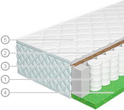 Блок независимых пружин TFK (каждая пружина в отдельном чехле из спанбонда). Плотность — 256 пружин на м2.