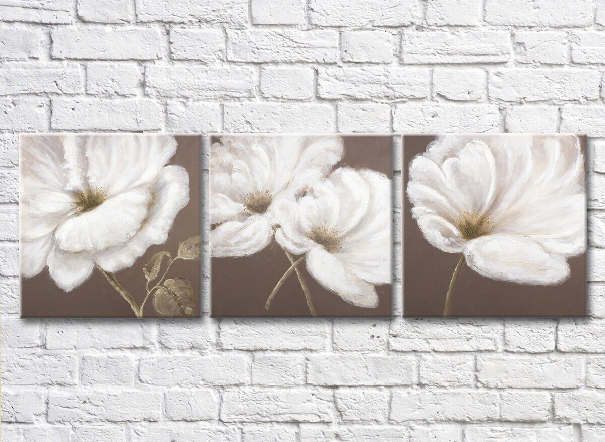 Картина Gallerix Triptych of white flowers on a brown background (500687)
