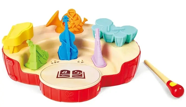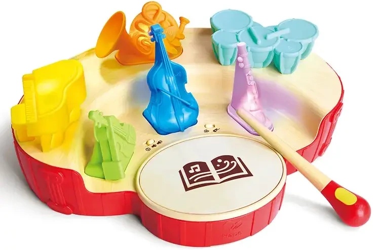 Игровой набор "Мини оркестр" бренда HAPE превращает изучение музыки в веселый и познавательный процесс, позволяя ребёнку ощутить себя частью настоящего оркестра. Достаточно просто взмахнуть дирижерской палочкой, чтобы управлять оркестром и исследовать магию музыки.