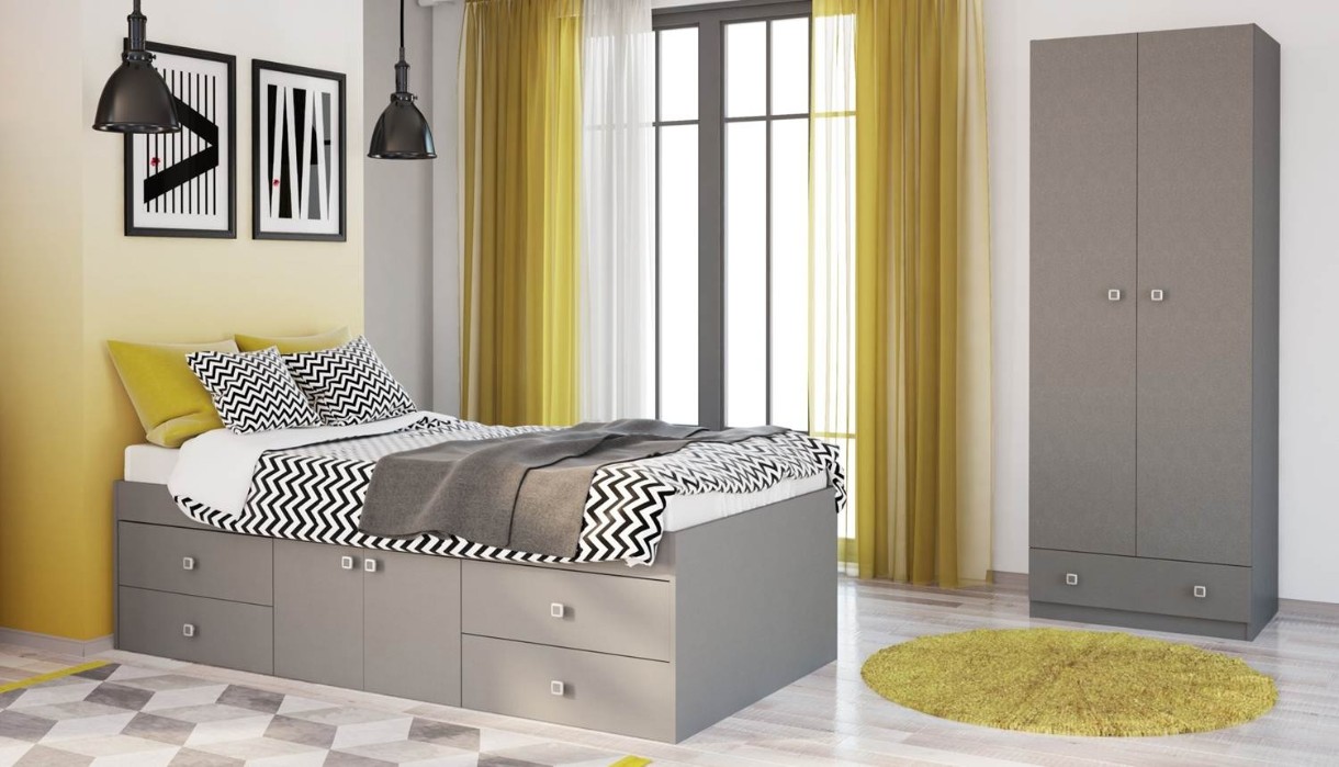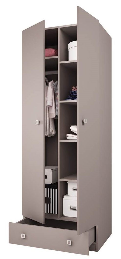 Шкаф двухсекционный Polini серый прекрасно сочетается с другими элементами мебели из коллекции Simple.