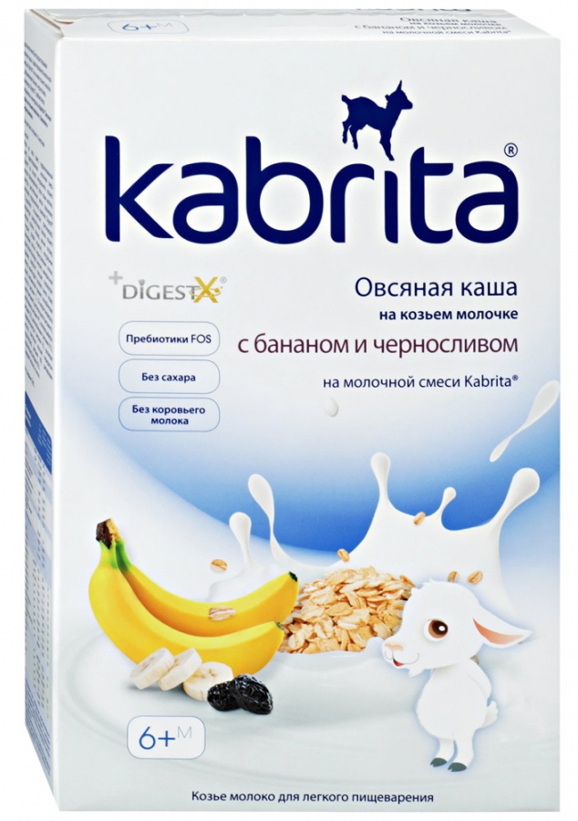 Нежная овсяная каша Kabrita на основе адаптированной молочной смеси Kabrita с добавлением спелого банана и полезного чернослива. Идеально подходит для сбалансированного питания малыша первого года жизни и расширения его вкусовых предпочтений. Приятный сливочный вкус достигается без добавления подсластителей - исключительно за счет натурального молочного сахара (лактозы), содержащейся в смеси и фруктов. Легко усваивается и хорошо переваривается. Адаптированная молочная смесь Kabrita на натуральном козьем молоке в составе каши для комфортного пищеварения.