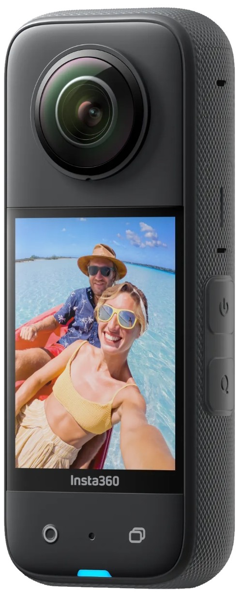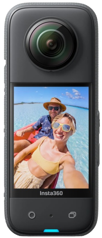 Корпус камеры X3 разработан специально для максимально комфортной съемки панорамных кадров и имеет пылевлогозащиту IPX8 (для подводной съемки и серфинга требуется аквабокс). 360 видео снимается в разрешении 5.7K с активным HDR. Также можно записывать классические широкоугольные видео на один объектив в 4K.