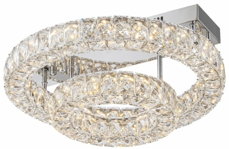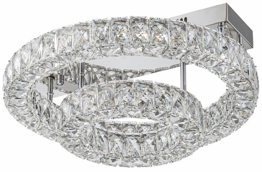 Светодиодный потолочный плафон сочетает в себе роскошь и современность благодаря своей конструкции с двойным обручем, украшенной высококачественным граненым стеклом. Его хромированная основа придает современный и изысканный вид, а встроенная светодиодная подсветка обеспечивает равномерное и теплое освещение. Этот плафон идеально подходит для элегантных помещений, таких как гостиные, столовые или спальни, и становится ярким декоративным элементом, подчеркивающим любую атмосферу. Его универсальный дизайн и глянцевая отделка делают его идеальным для тех, кто ищет декоративное и функциональное освещение одновременно.