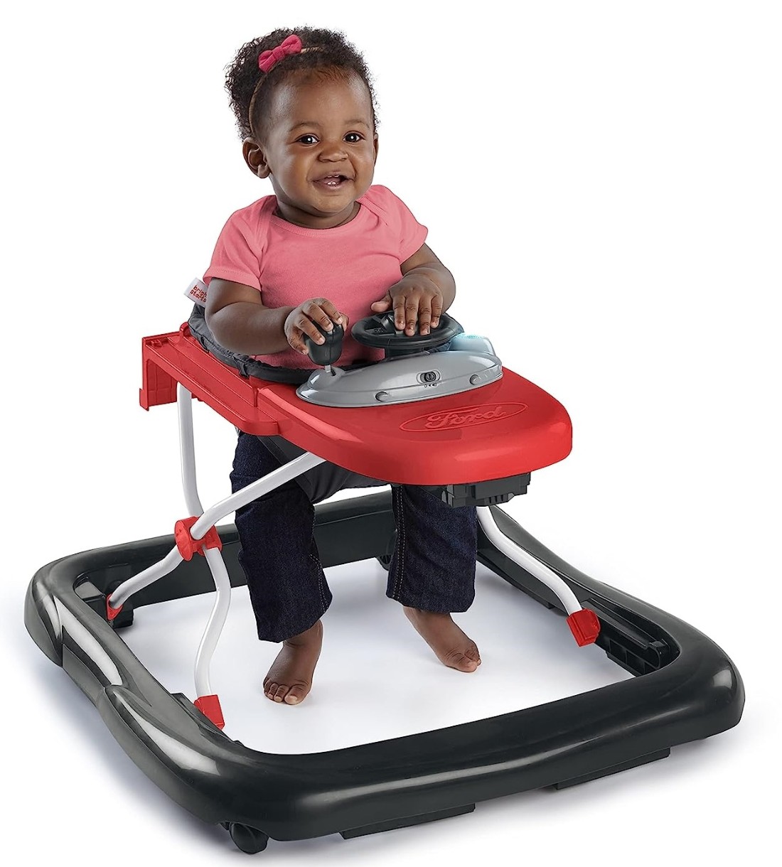 Ваш ребенок может сидеть в ходунках и делать свои первые шаги, слушая классные звуки машинки на игровой панели! Игровая панель оснащена автомобильными звуками, огнями, рычагом переключения передач и рулевым колесом в классном стиле Ford. Игровая панель съемная, так что вы можете играть с ней где угодно! Благодаря веселым звукам ваш ребенок не будет скучать и разовьет свое воображение.