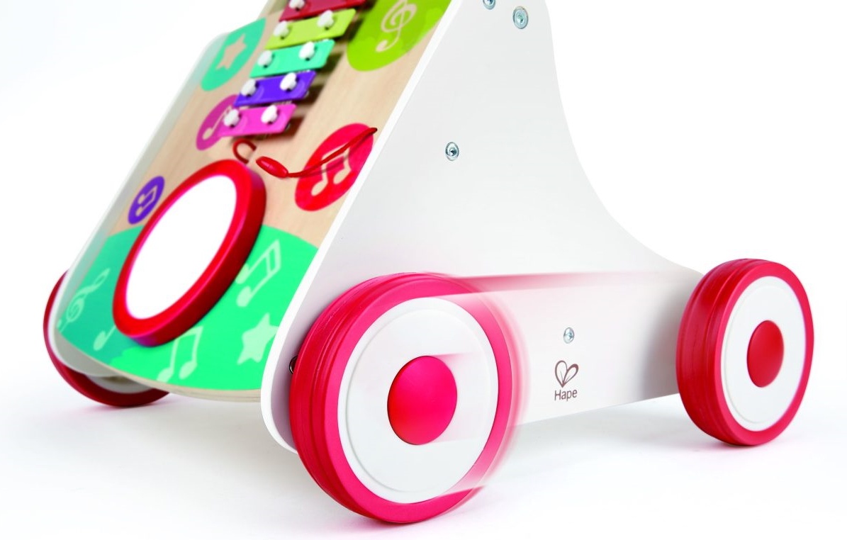 Помогите малышу сделать первые шаги с помощью музыкальных ходунков Hape. Игрушка подарит много веселья, сочиняя музыку и при этом учиться ходить. Музыкальная шкатулка воспроизводит мелодии при движении. Ребенок научится балансировать и улучшит свою ловкость во время передвижения по дому. Музыкальную игрушку можно переключить в бесшумный режим. Скорость движения можно регулируется для детей на разных обучения ходьбе. Натяжение задних колес можно усилить или ослабить, чтобы увеличить или уменьшить сопротивление. Даже сидя, малыш может наслаждаться игрой на музыкальных инструментах. В процессе игры тренируется координация рук и глаз, а также сенсорное развитие с помощью ударной установки, ксилофона и вращающихся блоков. Вся продукция Hape производится из экологически чистых материалов высокого качества и окрашена безопасными для детей красками. Hape — один из крупнейших в мире производителей игрушек. Компания руководствуется философией, что будущее принадлежит нашим детям, и создает игрушки, которые вдохновляют на игру и изучение мира, в котором мы живем.