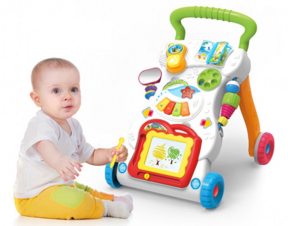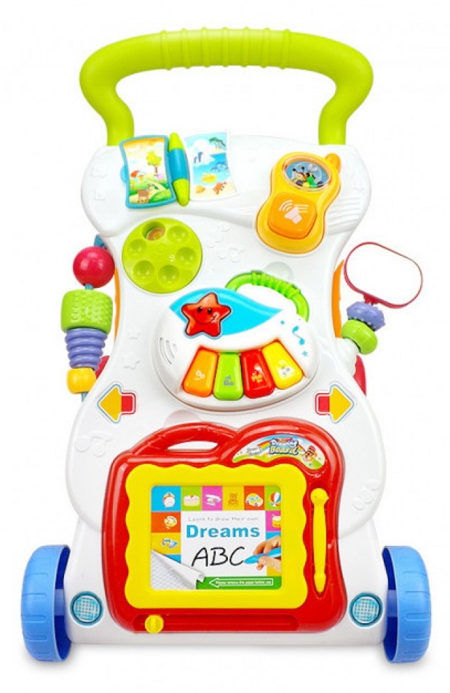 Игровой центр, каталка-ходунки (Huanger HE0801) - многофункциональный музыкальный развивающий центр предназначен для обучения ходьбе (толкания игрушки впереди малыша), а также для развития зрительных, слуховых и тактильных навыков малыша! Двигая детальки, нажимая кнопочки и поворачивая механизмы, малыш развивает мелкую моторику пальчиков.