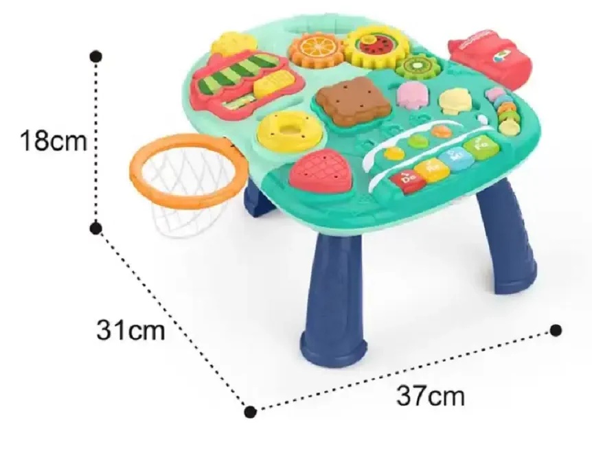 Панель оснащена музыкальными эффектами, а также другими развивающими деталями: пианино, сортер, подвижные шестеренки, кольцо для забрасывания шариков (шарики 3 шт входят в комплект).