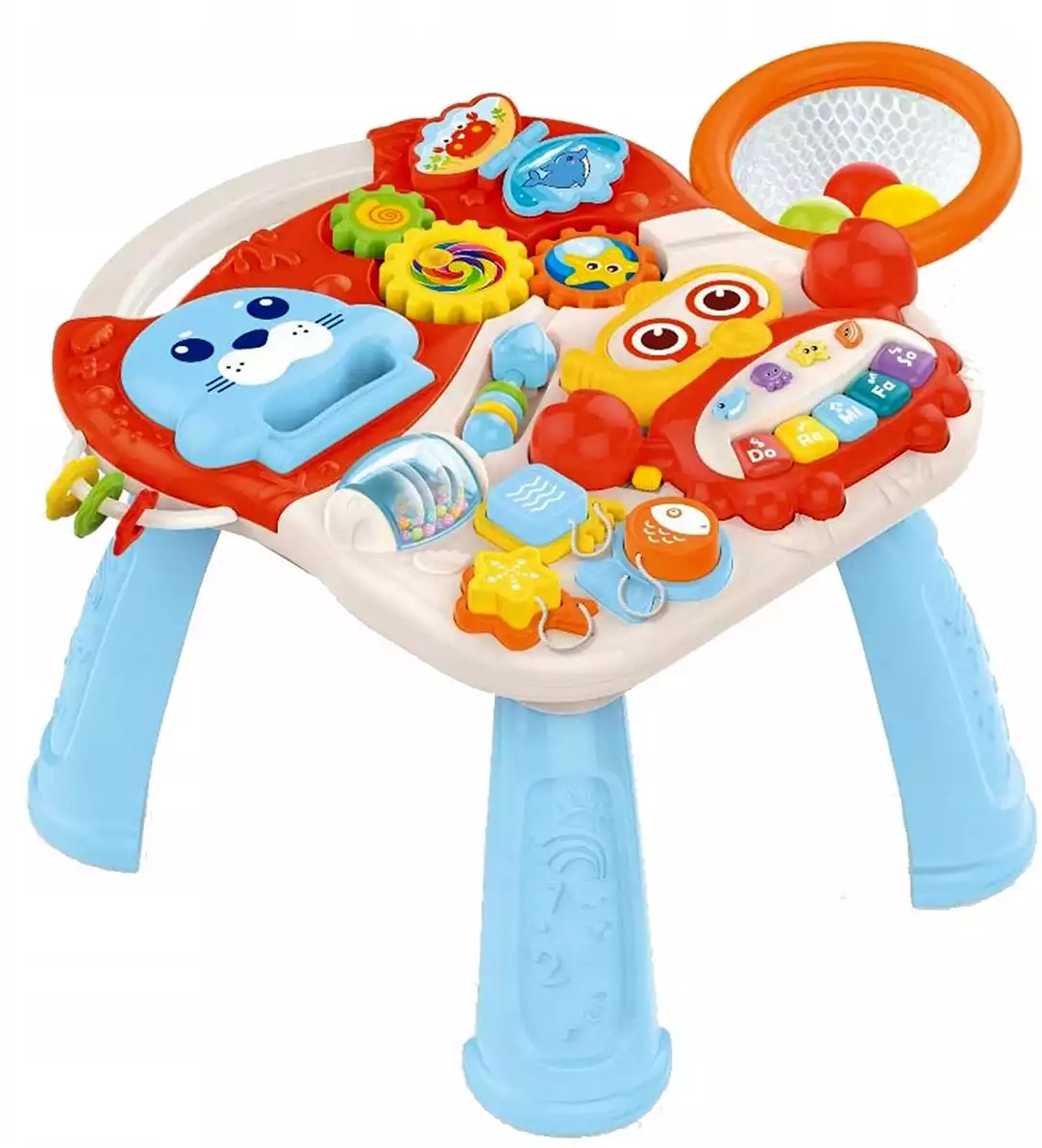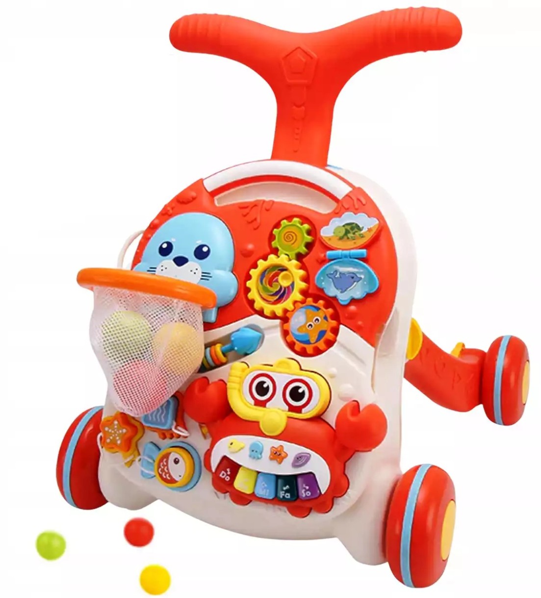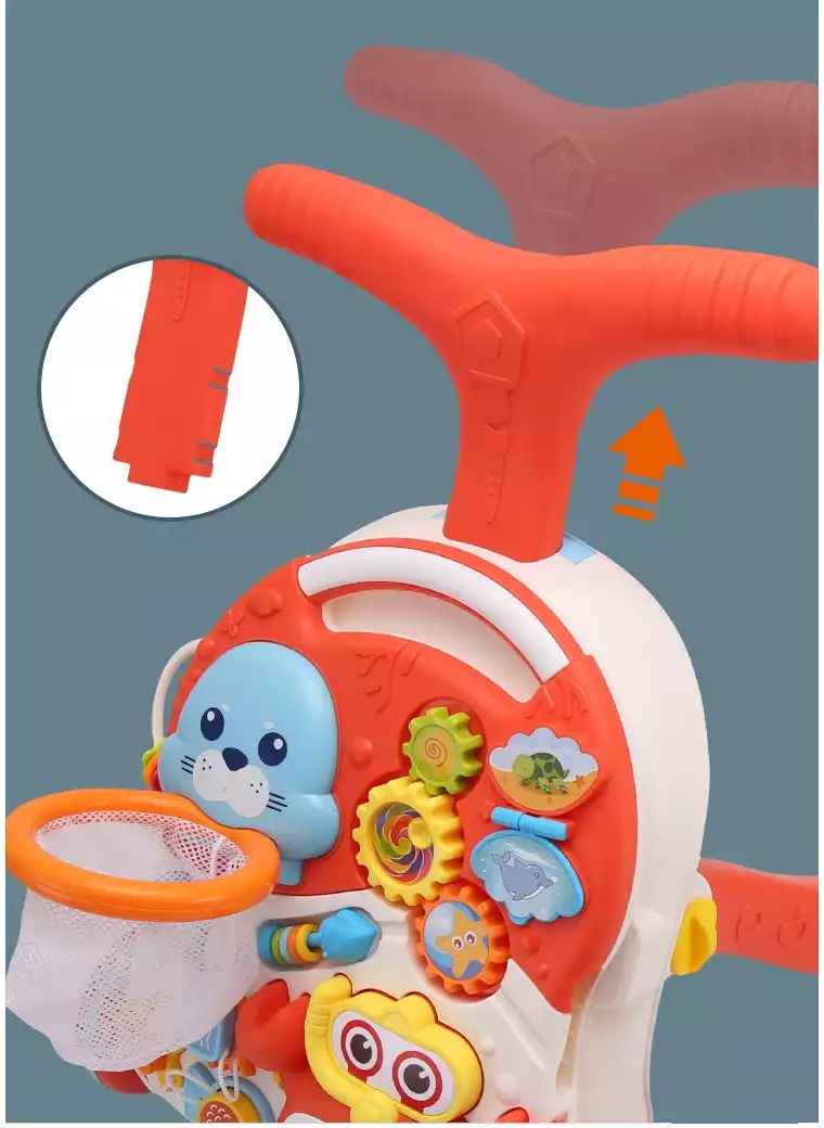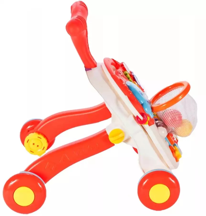Яркая красочная каталка-ходунки - замечательный подарок малышам, которые только начинают ползать и ходить. Каталка стимулирует малышей к движению - им обязательно захочется подержаться за ручку и прокатить каталку. Делать свои первые шаги ребенку будет веселее и интереснее. Каталка оснащена различными интерактивными элементами, а в процессе игры с ней малыш будет развивать координацию, моторику, равновесие, и его движения станут более четкими. Разноцветные элементы помогут малышу научиться различать цвета.