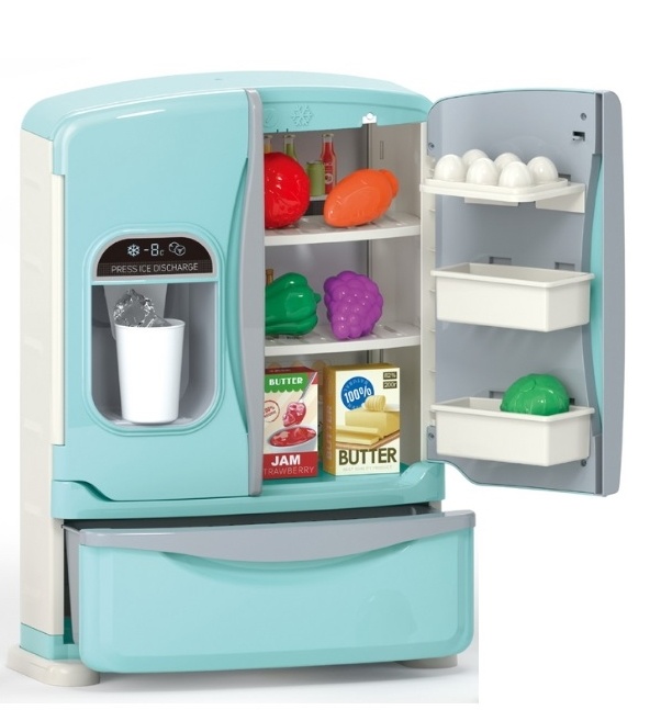 Обучающий и интерактивный игровой набор, идеально подходящий для детей, которые хотят имитировать домашние дела. Этот холодильник предлагает реалистичные и веселые впечатления, поскольку он оснащен двойными открывающимися дверцами, полками и ящиками для "еды".