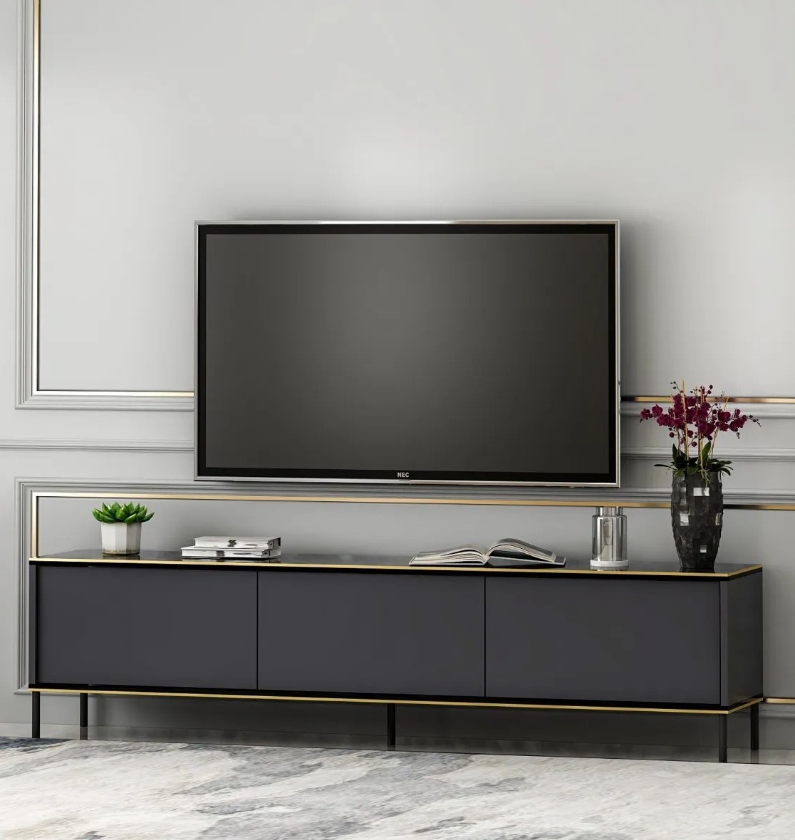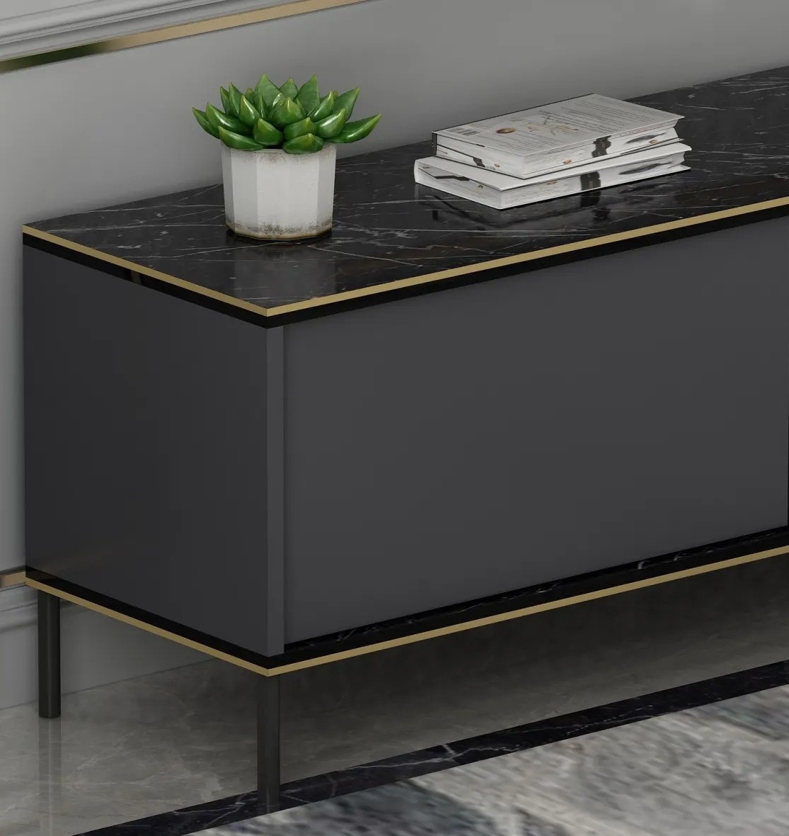 Тумба под ТВ Trendy Imaj Anthracit/Gold/Black 180x45.2x35cm GTR000198