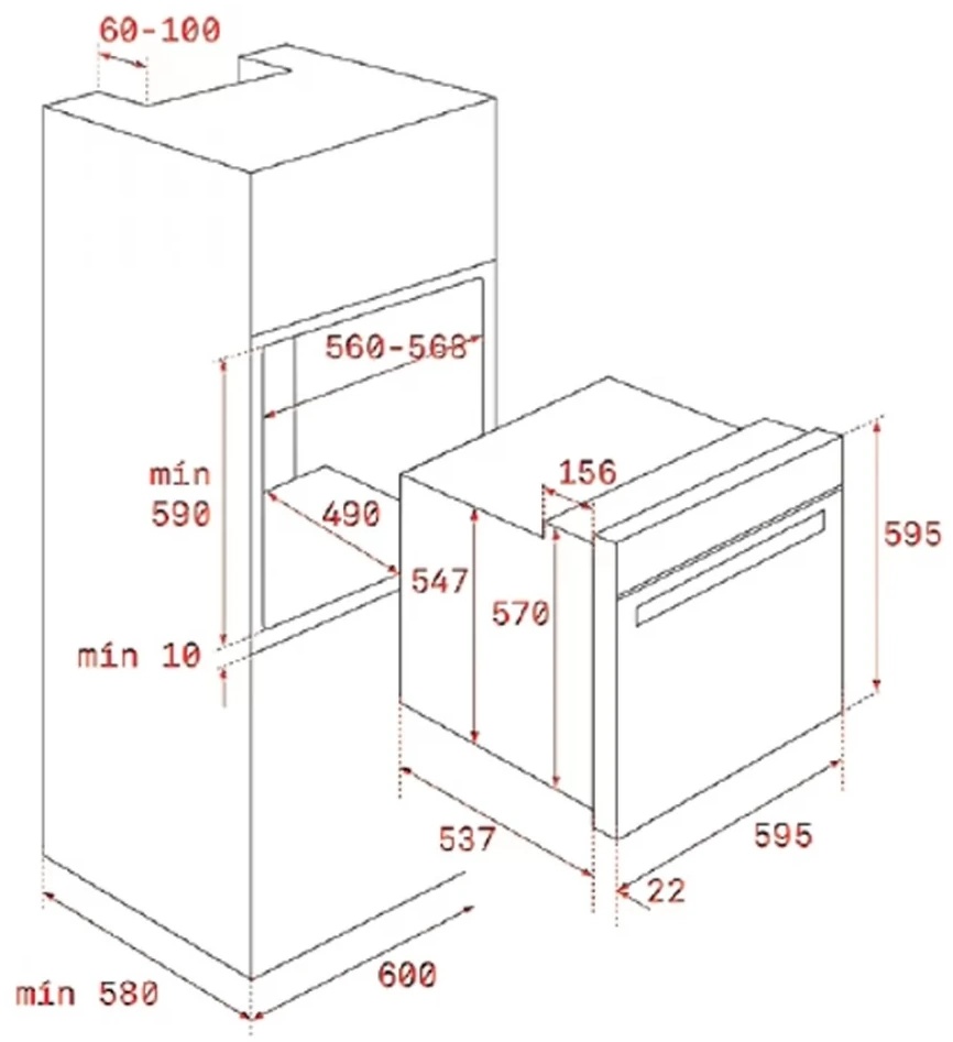Размеры ниши для встраивания (ВхШхГ)59x56x49 см
