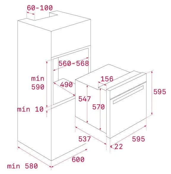 Размеры ниши для встраивания (ВхШхГ)59x56x49 см