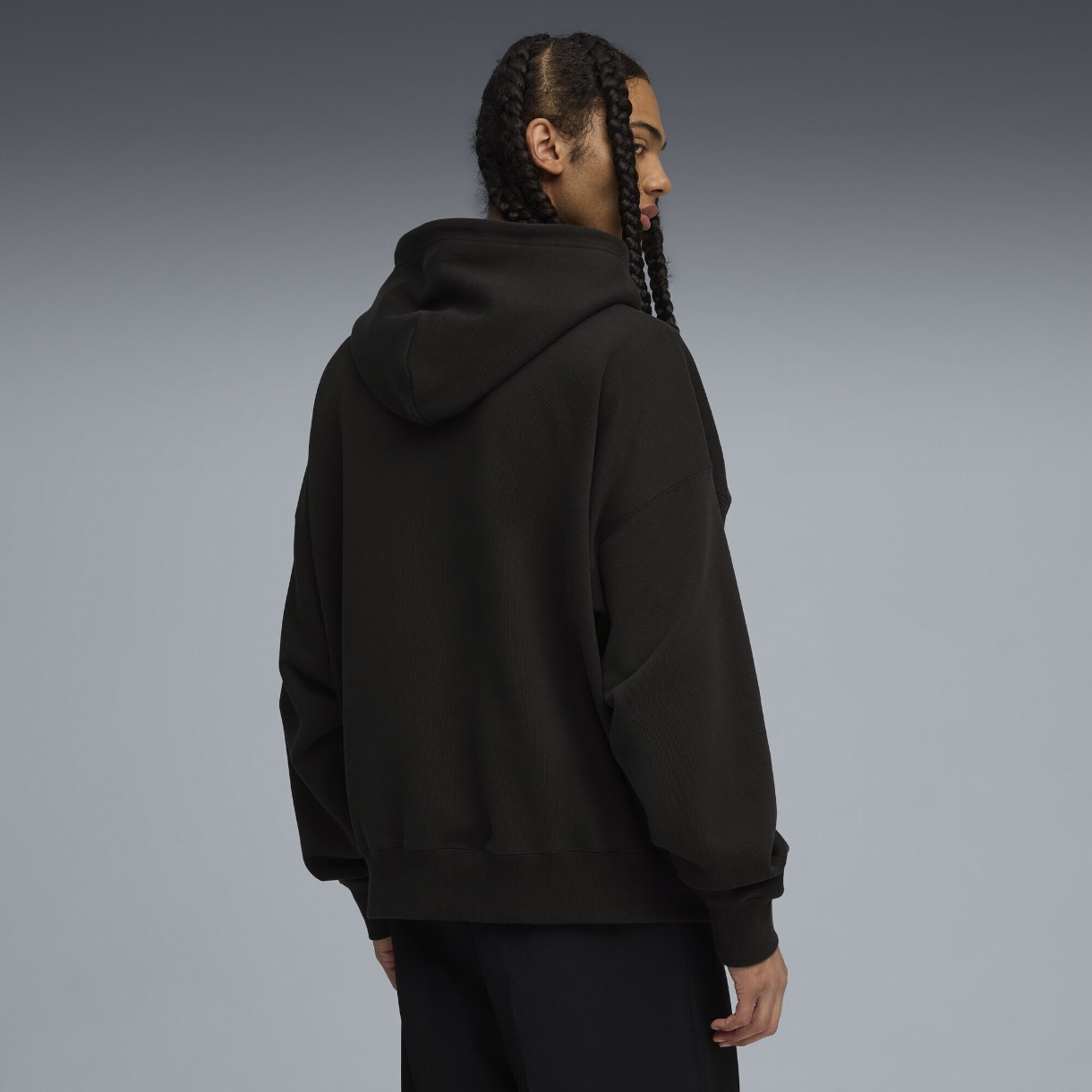На груди расположен фирменный брендинг PUMA x SKEPTA, а на рукаве - логотип PUMA Cat, что делает толстовку частью эксклюзивной коллаборации и придаёт ей особый характер.
