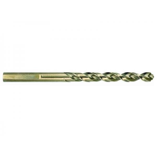 Сверло по металлу предназначено для использования по металлу, включая нержавеющую сталь. Применяется для сверления тонколистового профильного проката, а также труб без предварительного накернивания, где требуются точные и чистые отверстия. Золотистое оксидное покрытие предотвращает перегрев, увеличивая срок службы сверла. Точное сверление без увода сверла в сторону обеспечивается благодаря центрирующему острию. Постепенно увеличивающаяся по направлению к хвостовику толщина сердечника для наибольшей стойкости на излом. Три фрезерованные поверхности хвостовика предотвращают проскальзывание в патроне.