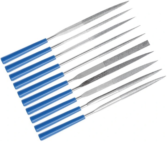 Напильники для точных отделочных работ по стеклу, керамике, дереву и металлам. 10 стальных наконечников разных форм. Применение в ювелирном, часовом деле, гравировке.