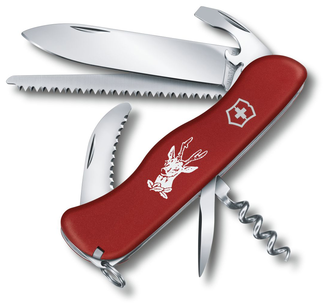 Hunter - один из немногих ножей, в котором отвертки/открывашки комбинируются в одном инструменте. Данный инструмент объединяет четыре функции: открывалку для бутылок, плоскую отвертку, инструмент для снятия изоляции и консервный нож. Нож также имеет штопор, кольцо для страховки и обязательные зубочистку и пинцет.