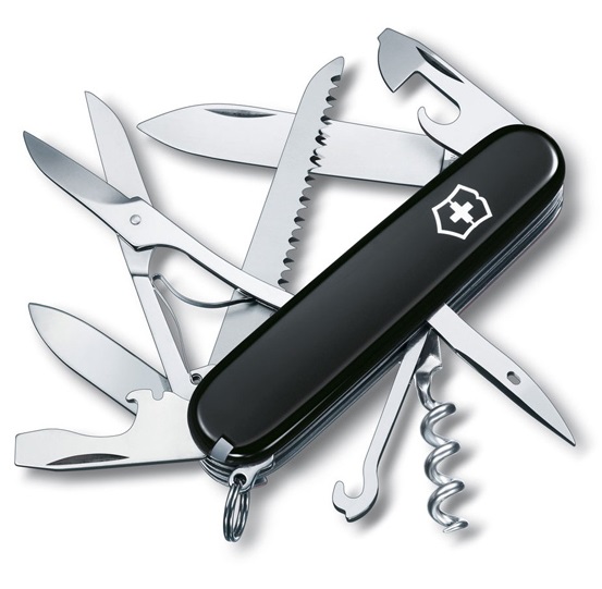 Швейцарский офицерский нож Victorinox Huntsman – практичный универсальный нож для повседневного использования. Несмотря на небольшие габариты, это серьезный мультиинструмент, одна из самых популярных моделей армейских ножей Викторинокс с четырьмя рядами (слоями) приспособлений. Набор функций – 15: - большое лезвие - малое лезвие - штопор - шило, кернер - многофункциональный крючок - нож для открывания консервов - малая отвертка - открывалка для бутылок - плоская отвертка - инструмент для снятия изоляции - кольцо для подвеса - пинцет - зубочистка - ножницы - пила по дереву
