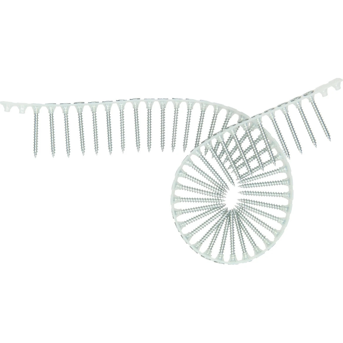 Каждый саморез имеет полный резьбовой стержень и острый наконечник, что обеспечивает надежное и быстрое закрепление в древесине. Саморезы идут на полосках по 50 штук, что упрощает установку и предотвращает заедание при работе с пистолетами для саморезов.
