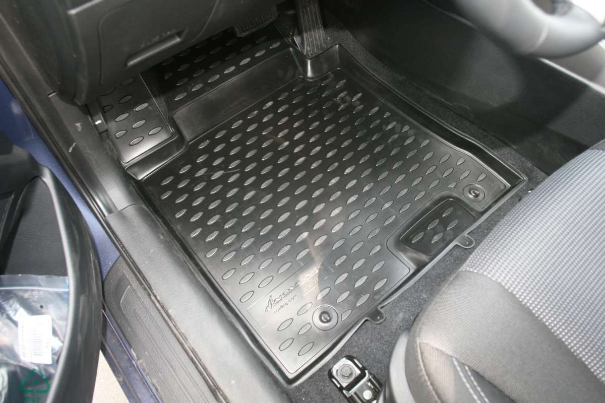 Коврики в салон для HYUNDAI i30 2012+ изготовлены из экологически чистого полимерного материала. Представленные коврики пластичны, не боятся химически активных веществ. Одним из плюсов является фиксация ковриков специальными крепежами. Производитель гарантирует, что во время движения автомобиля коврики не сдвинутся с места. Конструкция ковриков исключает блокирование педали тормоза, акселератора или сцепления. Нужно отметить, что передние коврики имеют специальный язычок, который закрывает площадку отдыха левой ноги, а задние коврики соединены между собой перемычкой.