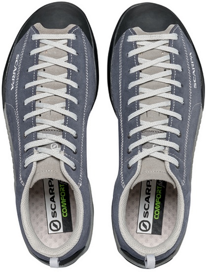 Mojito (произносится «мохито») — без преувеличения шедевр дизайнерской и конструкторской мысли лаборатории Scarpa. При попытке охарактеризовать эти кроссовки, неизбежно всплывает слово «ультра»: ультрамодные, ультралегкие, ультраудобные. Издалека похожие на культовые во все времена кеды, Mojito на поверку оказываются настоящими «боевыми» кроссовками, которые, благодаря инновационной колодке и вибрамовской подошве, великолепно берегут ноги при самых разных нагрузках. Почти плоскую подошву оценят и городские экстремалы (скейтеры, паркурщики), и завзятые водители, и любители пробежаться по тропинкам парка. Отличное сцепление резины и низкий вес — то, что надо для подходов в скальном альпинизме. Поразительно легкие (в них порой забываешь, что обут), Mojito отлично подходят для повседневной носки в городе. «Длинная шнуровка» позволяет точно подогнать обувь под форму ноги и под характер нагрузки. Замша отлично дышит и легко очищается от грязи.