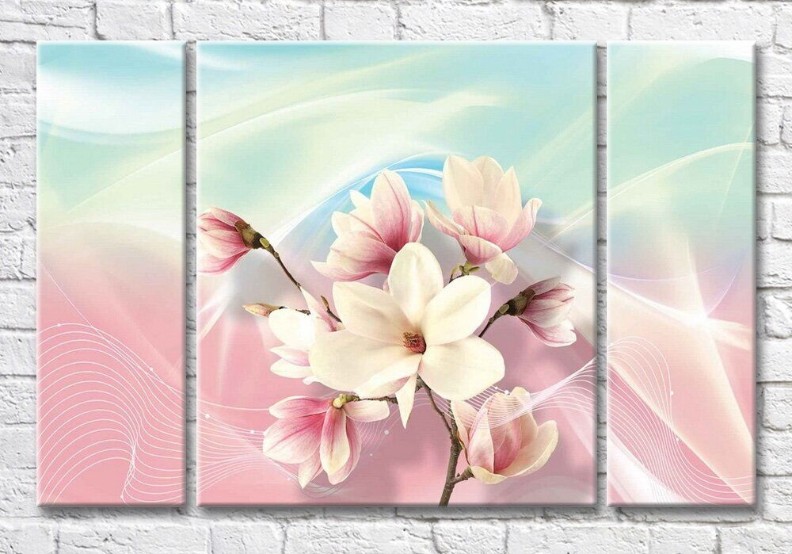 Картина Magic Color Magnolia branch on Pink/Blue background (3565147)