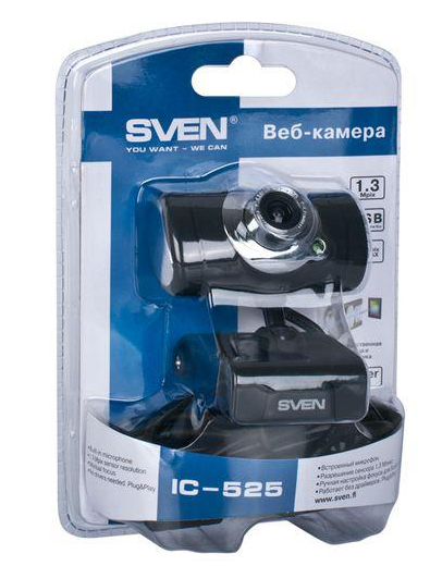 Веб-камера SVEN IC-525 – устройство среднего класса. Она больше всего подойдет тем, чья жизнь и работа связаны с постоянными переговорами и интернет-конференциями. В данном случае особые требования предъявляются к скорости обработки и передачи информации (изображения и звука), возможности контролировать работу устройства (для этого в камере предусмотрен индикатор), легкости его подключения (устройство поддерживает технологию Plug&Play).