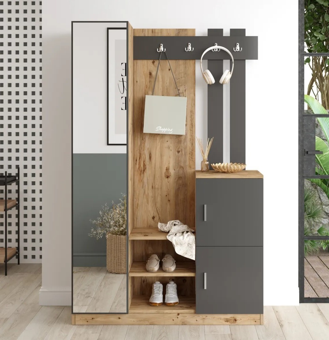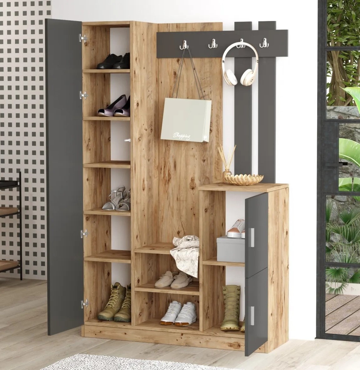 Преобразите входное пространство в организованное и стильное с изысканной стойкой для прихожей. Созданная с высокой точностью, эта деталь интерьера рассчитана на то, чтобы производить впечатление на каждого, кто переступает порог.