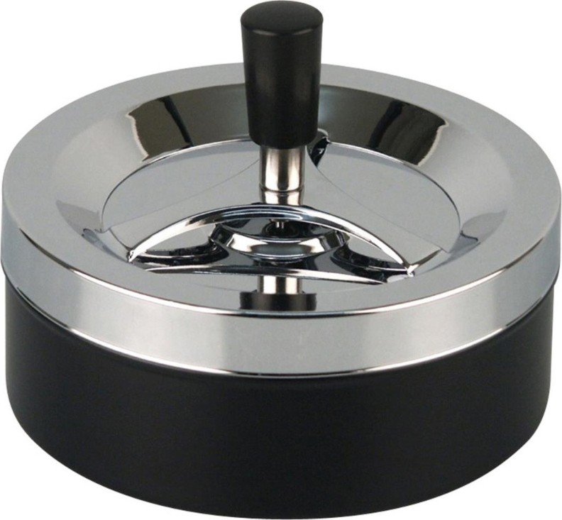 Вращающаяся пепельница хром/чёрный матовый 14 см — стильный и функциональный аксессуар для курильщиков, с высотой 12 см для удобного размещения на столе или полке. Глянцевый хромированный верх сочетается с матовым чёрным основанием, обеспечивая элегантный вид и устойчивость к царапинам. Поворотный механизм позволяет легко сбрасывать пепел и чистить поверхность, а компактные размеры делают её идеальной для дома, офиса или террасы. Прочная конструкция из металла гарантирует долговечность — практичный выбор для современного интерьера.