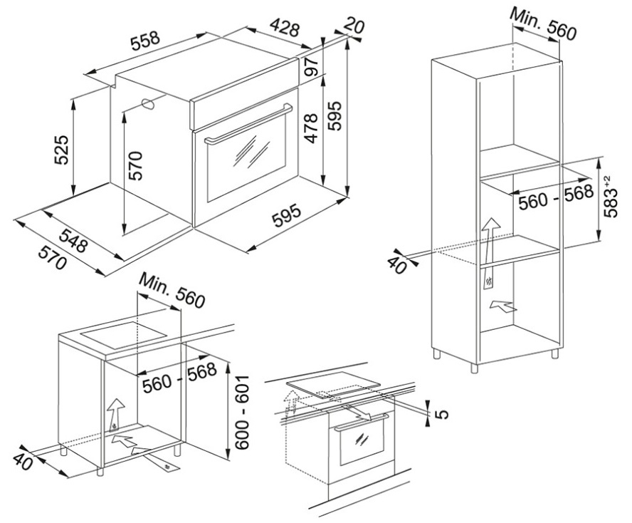 Размеры ниши для встраивания (ВхШхГ)60x56x56 см