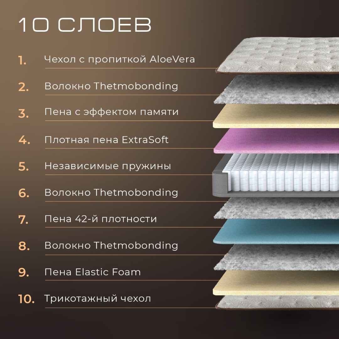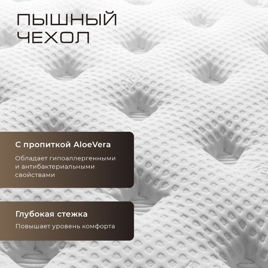Матрас двухсторонний средней и повышеной жесткости. Высота матраса 30 см. В основе 7-ми зональный блок независимых пружин Pocket Spring — 1280 шт. Поверхность матраса из Турецкой трикотажной плетенной ткани, приятная на ощупь. Верх чехла матраса состоит из глубокой стежки из холофайбера и слоя антибактериального волокна Термобонд. Пружины Pocket Spring из нержавеющей стали 2,2 мм. В матрасе есть антибактериальная прослойка, в нем не заводятся клопы, клещи и другие гости.
