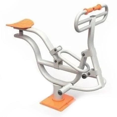 Материалы: корпус оборудования изготовлен из металла, окрашен в электростатическом поле; сиденье и педали – из полиэтилена LLDPE; ручки – прорезинены. Соединительные элементы изготовлены из оцинкованного металла и имеют специальное антивандальное покрытие. Легко монтируется на бетон или непосредственно на землю.