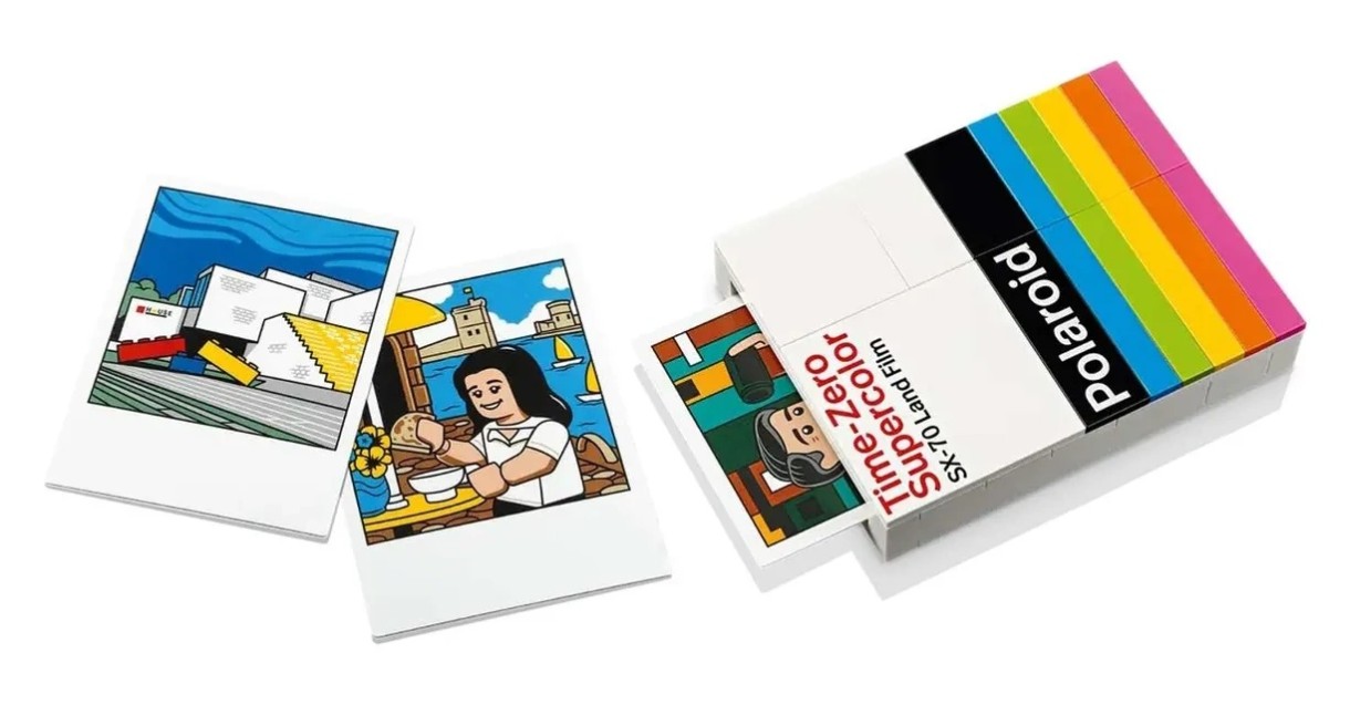 В наборе имеются детали для сборки коллекции пленок Polaroid Time-Zero Supercolor SX-70 Land, содержащих 3 иллюстрированные «фотографии», в том числе одну фотографию изобретателя Polaroid Эдвина Х. Лэнда. Выберите фотографию, загрузите ее в камеру, нажмите красную кнопку спуска затвора, и фотография будет выброшена, как настоящая.