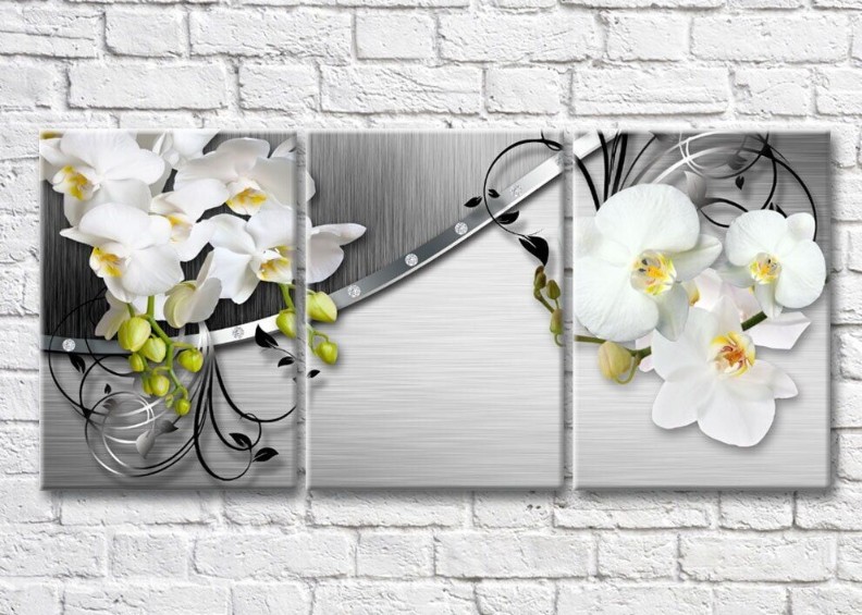 Картина Magic Color Branches of White orchids on a Gray metallic background (3517889)