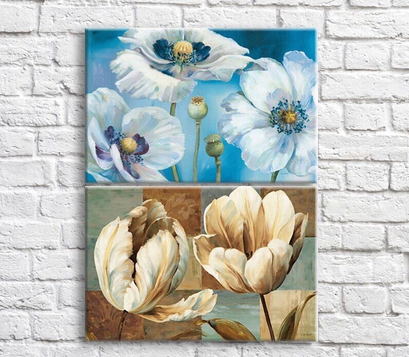 Картина ArtPoster White poppies on Blue and Brown backgrounds (3467866)