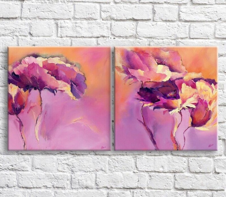 Картина ArtPoster Violet Pink poppies watercolor on Pink background (3467807)