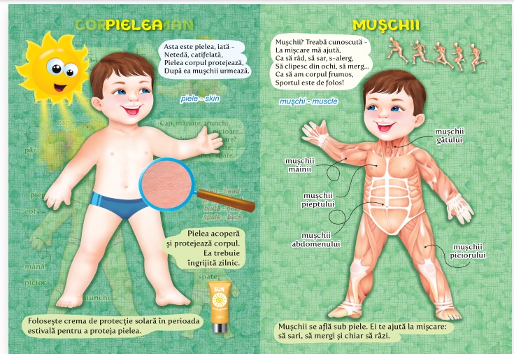Книга делает небольшой набег на тело, которое работает постоянно, о том, как заботиться о нем, а также изучает части тела на английском языке.