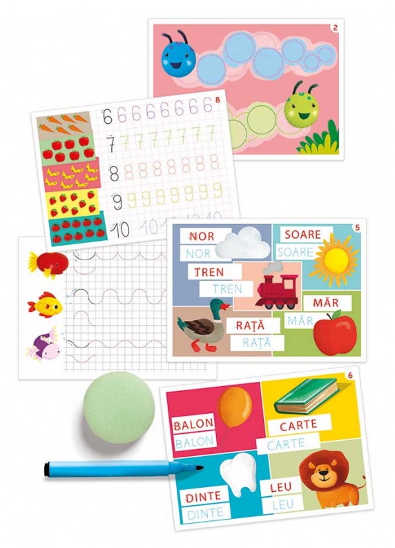 Прогрессивная развивающая игра, специально разработанная для детей от 5 лет. Красочные карточки для письма помогут ребенку научиться читать и писать. Начиная с простых упражнений, карточка за карточкой ребенок учится соединять предметы по первым буквам, практикуется и пишет много слов. Кроме того, благодаря специальному маркеру и губке он может повторять упражнения столько раз, сколько пожелает.