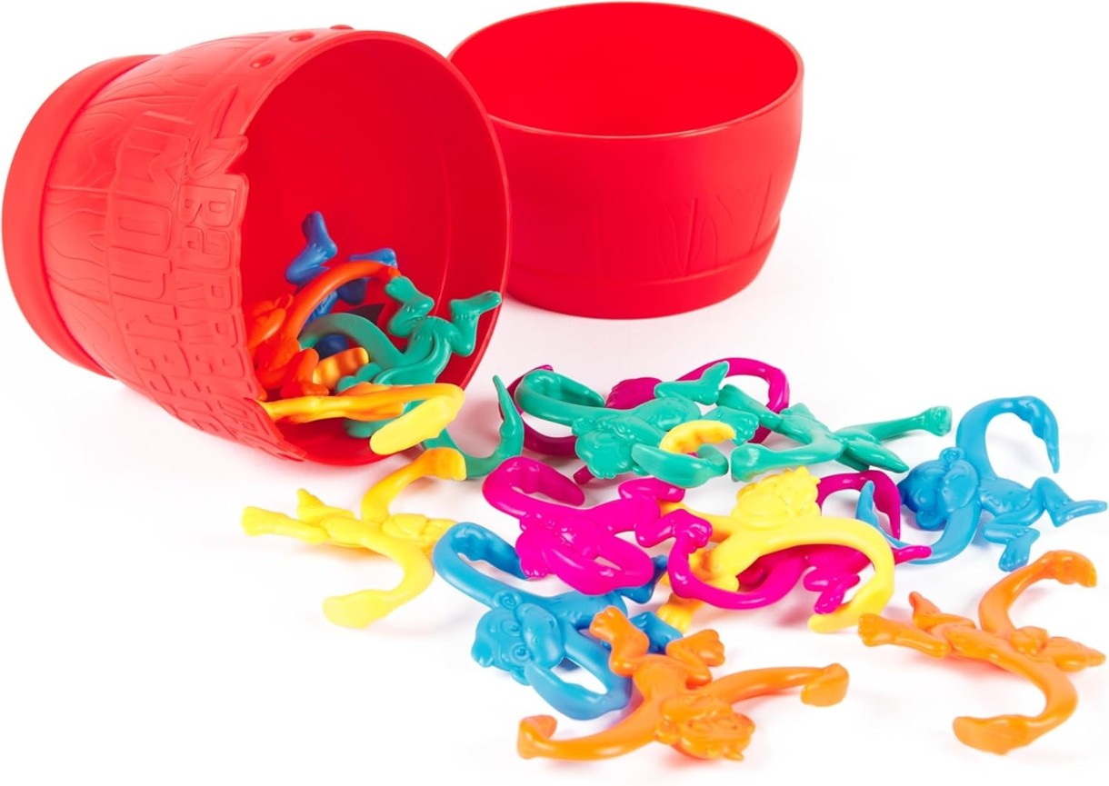 Что может быть веселее бочки с обезьянами? Эта любимая игра Barrel of Monkeys для детей от 3 лет и старше имеет современный, переработанный вид, включая новые выражения мордочки и цвета обезьян, со всем классическим очарованием оригинальной игры. Залезьте в бочку, чтобы подобрать обезьяну, и попытайтесь связать как можно больше обезьян, не уронив их. Тот, кто соберет больше всего обезьян за один ход, победит!