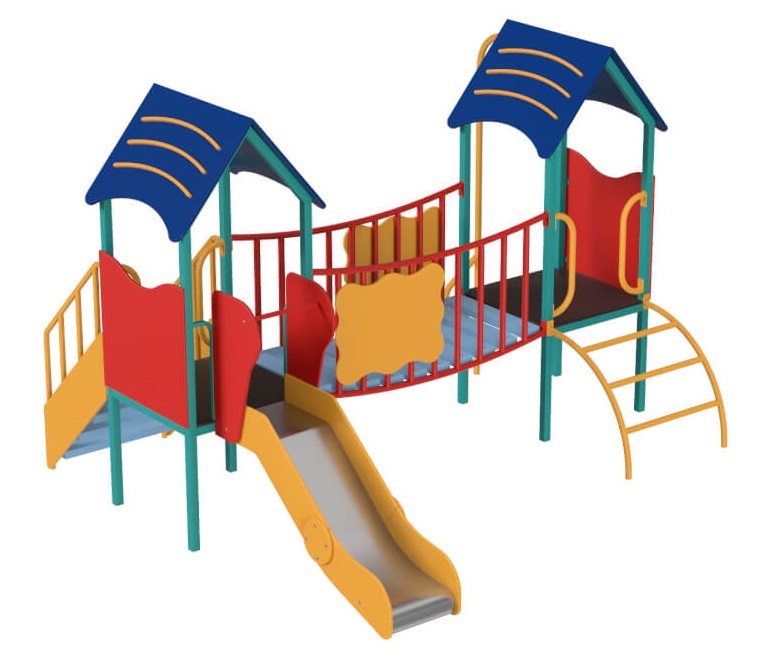 Детский комплекс предназначен для самых маленьких детей на детской площадки. Комплектация детского комплекса «Нежность» Многофункциональный детский комплекс состоит из двух башен с платформами, вогнутого мостика, детской горки, ступенчатой лестницы, маленькой металлической лестницы, «веселого» спуска и четырех панелей рифм.
