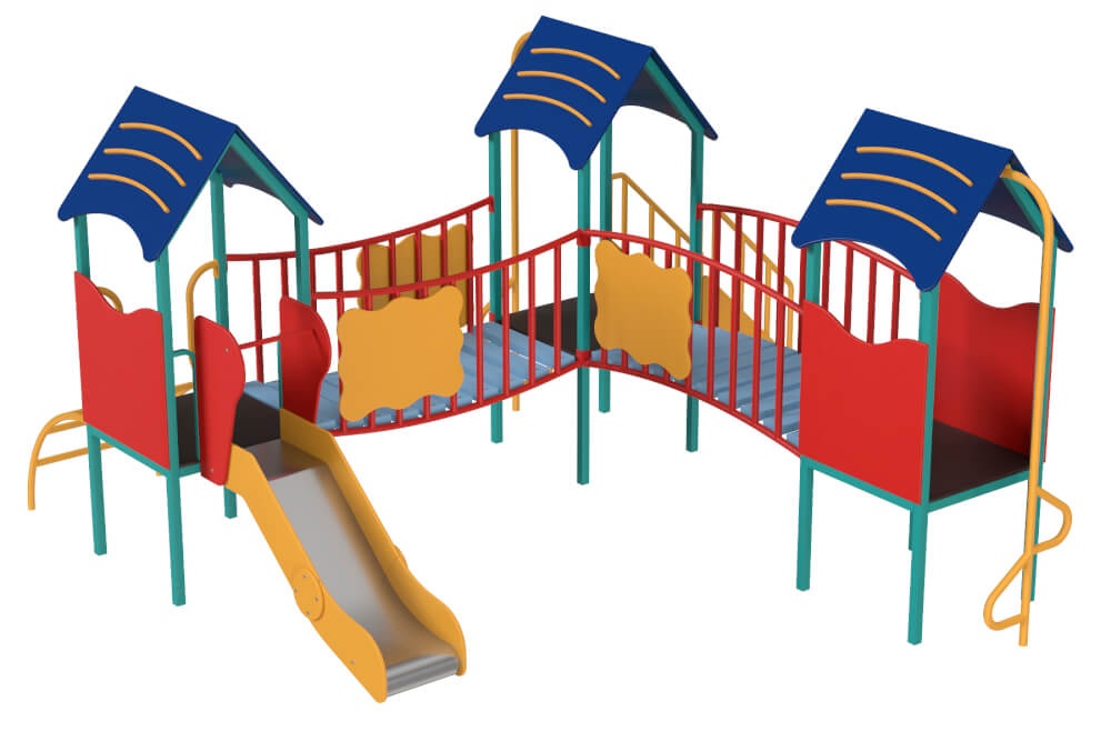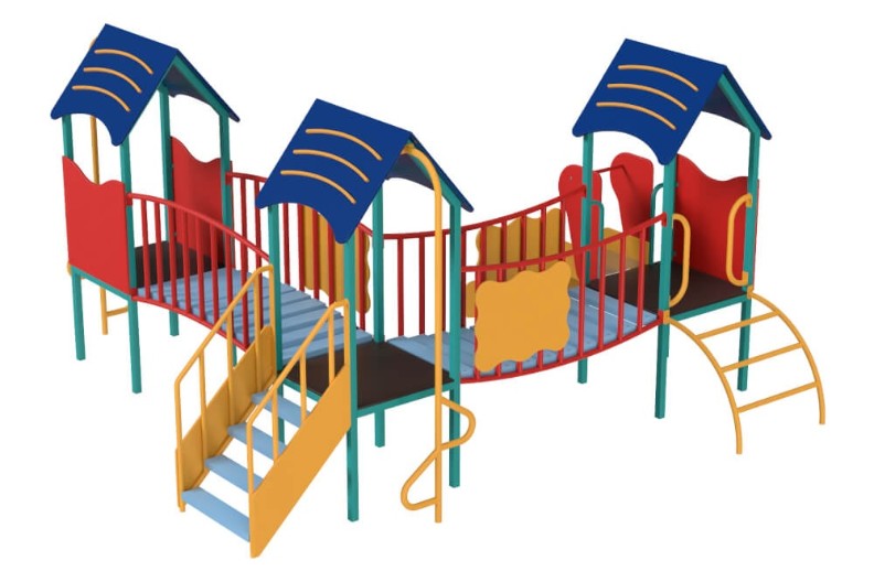 Многофункциональный детский комплекс состоит из трёх башен с платформами, вогнутого и выпуклого мостиков, детской горки, ступенчатой лестницы, маленькой металлической лестницы, «веселого» спуска, шести панелей рифм и трёх вертикальных ступенчатых лазалок. Комплекс, по желанию заказчика, может комплектоваться дополнительными спортивными элементами.