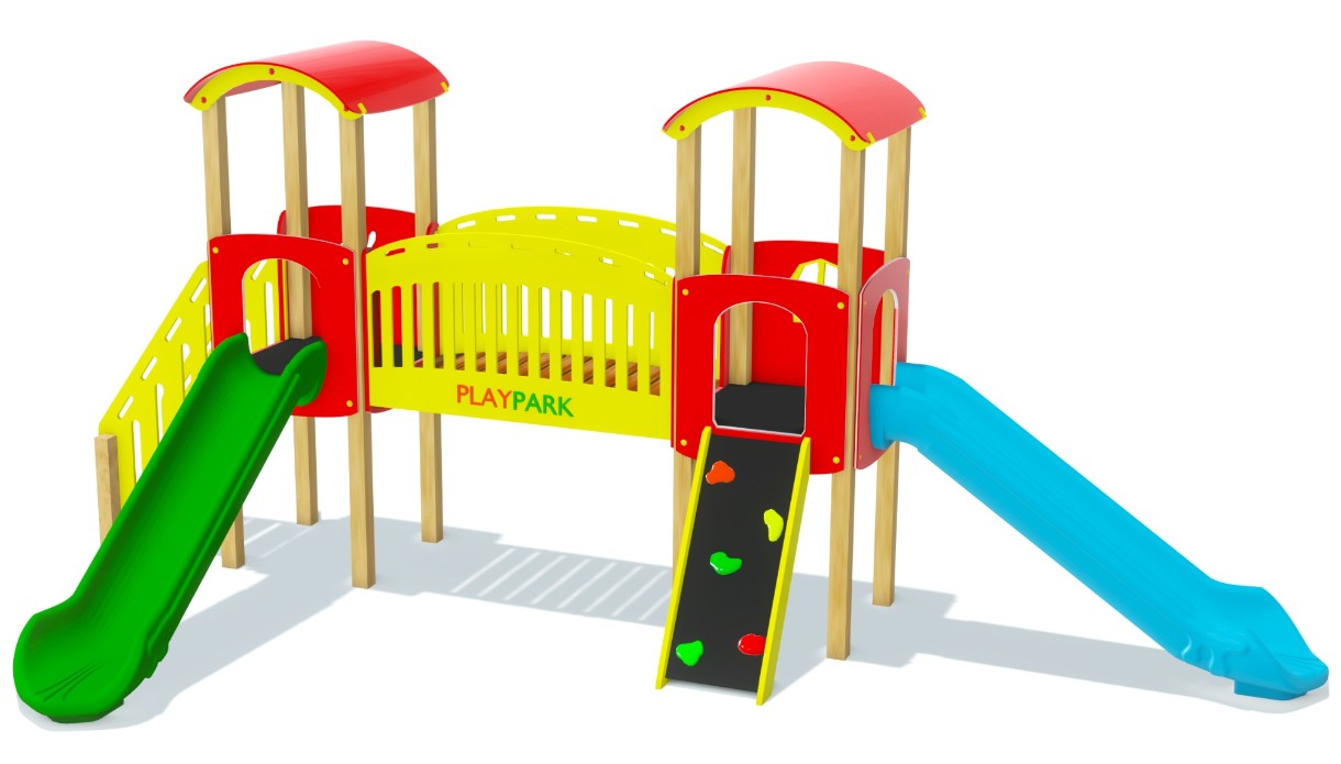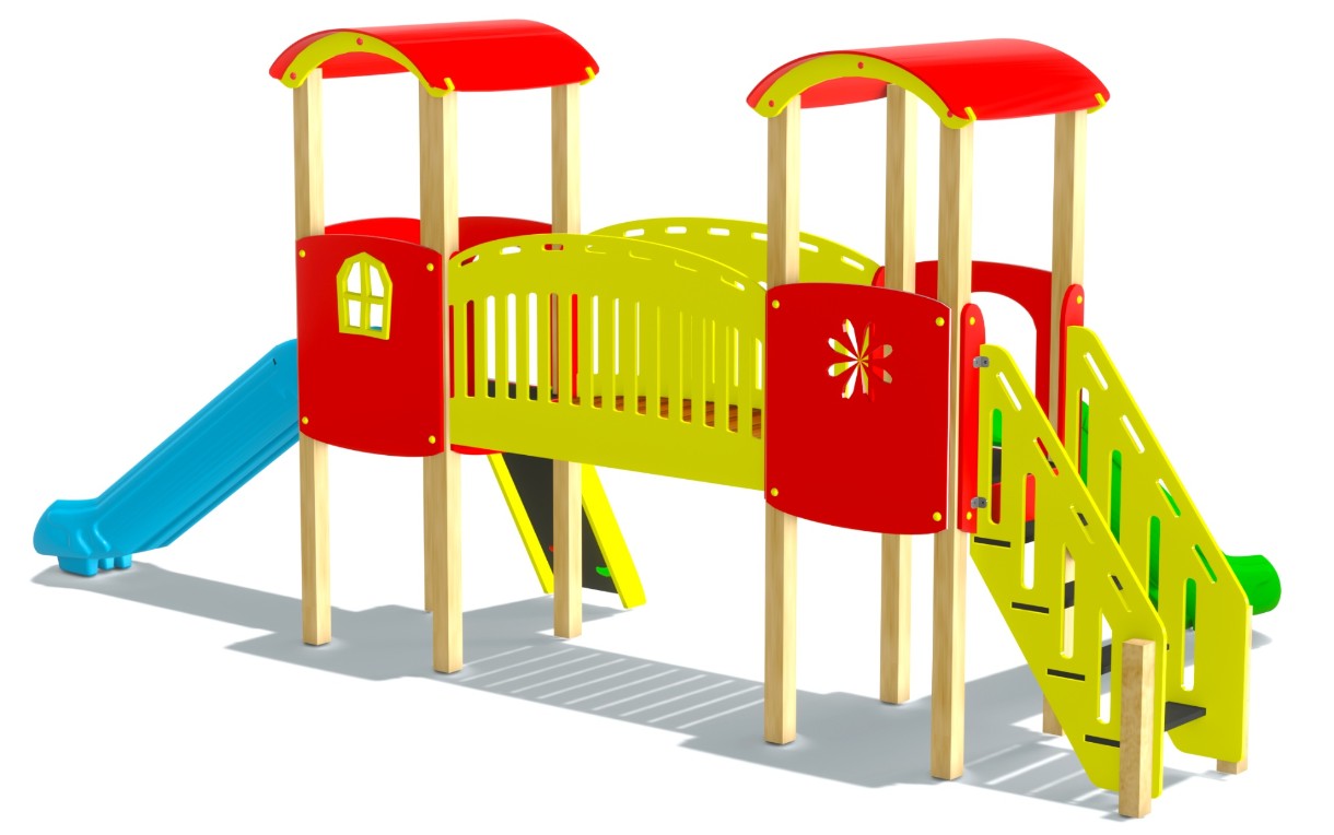 Материал: изготовлен из обработанного сухого дерева и влагостойкой, ламинированной фанеры. Горка изготовлена из толстостенного двухслойного армированного LLDPE-пластика. Пластиковые детали изготовлены из антистатического материала, безвредного для здоровья, устойчивого к УФ-излучению. Пластиковые заглушки на все болтовые соединения. При установке изделие бетонируется.