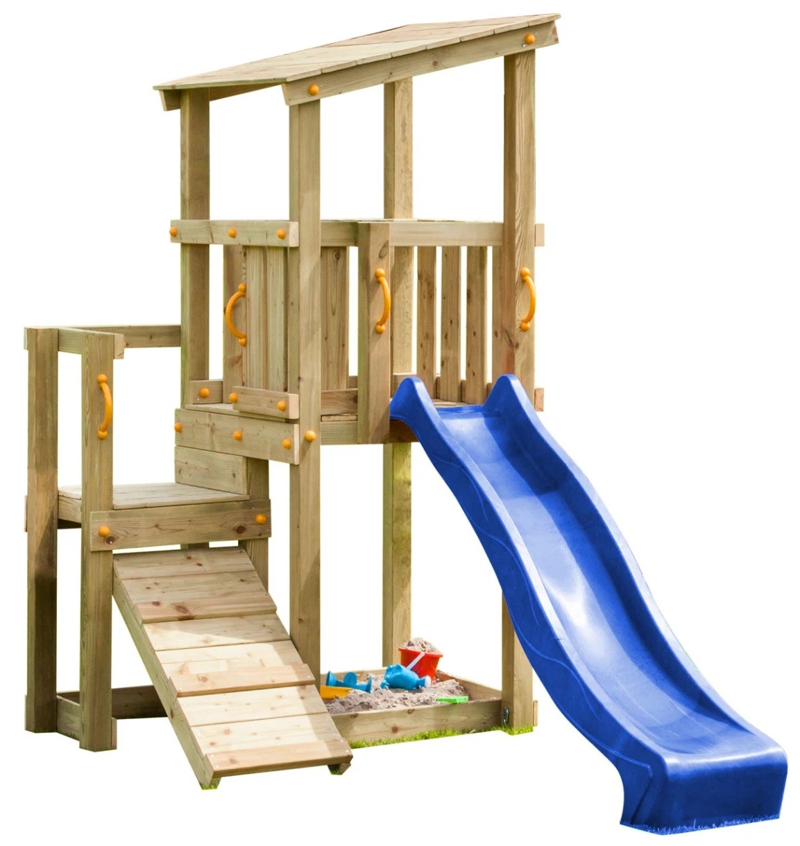 Базовая комплектация: Двухуровневая башня c крышей (высота платформы от земли - 1200мм и балкона - 900мм), Лестница, Песочница, Горка прямая (установочная высота 1200мм), Горка прямая (установочная высота 900мм) На выбор один из аксессуаров (Бинокль, Зеркало, Мегафон, Руль)!