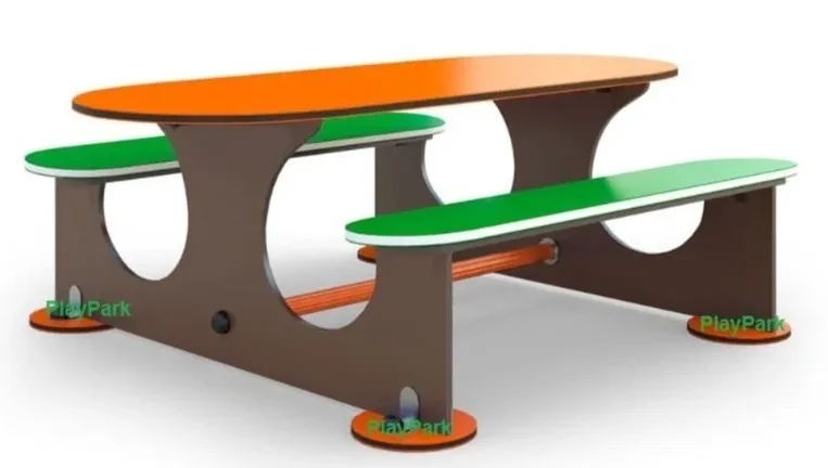 Детский столик с лавочками F-3 - элемент оборудования для любой детской площадки. Позволяет детям комфортно играть в различные развивающие игры на игровой площадке или в парке. Скамья выступает в качестве зоны отдыха.