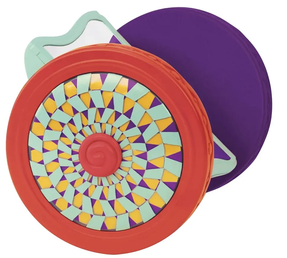 - Одно колесо - с бусинками, которые гремят. Другое - с волшебным спиральным дизайном.