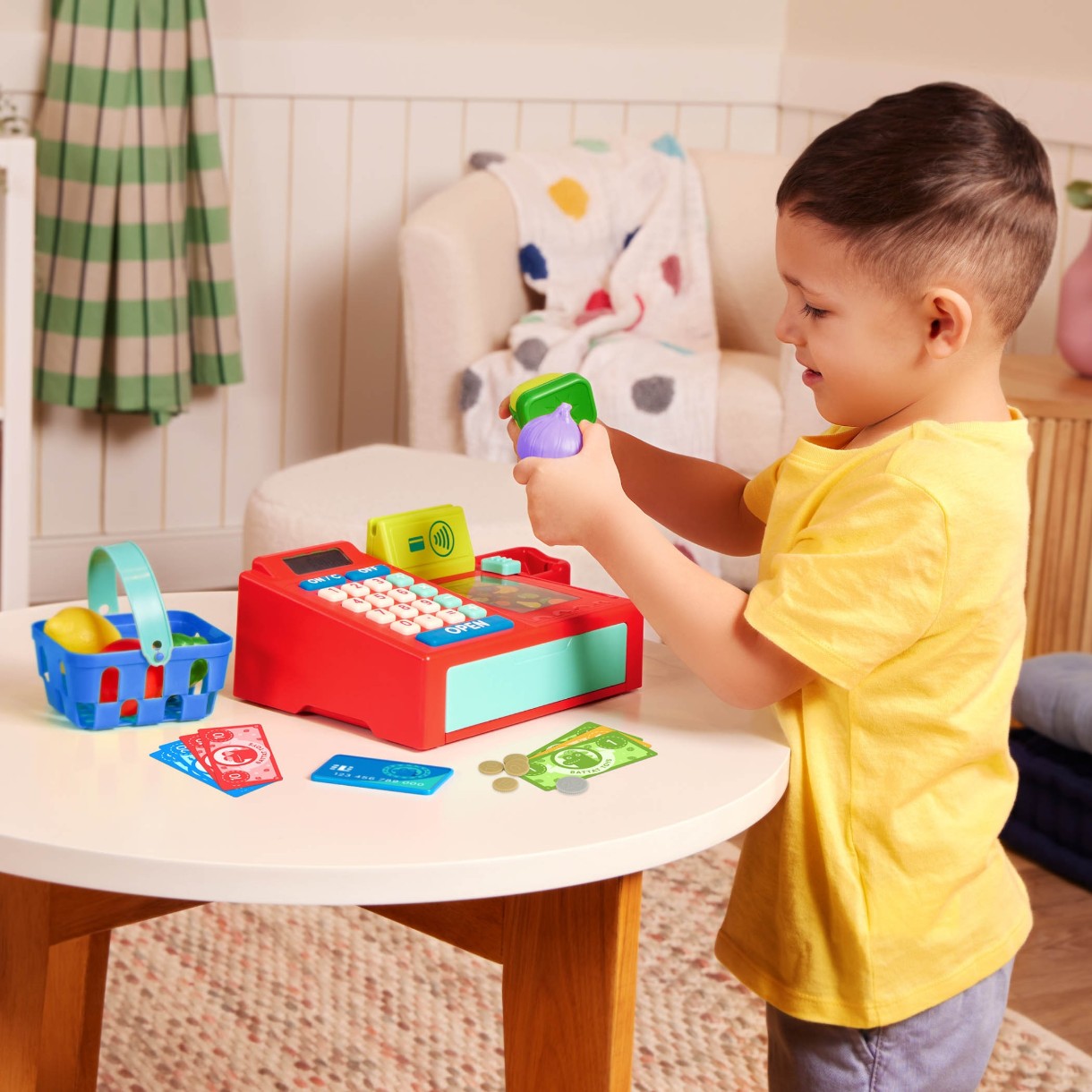 Преврати игру в магазин в познавательный опыт с Ring It Up Register — интерактивной кассой, идеально подходящей для маленьких продавцов! Благодаря реалистичным функциям и множеству аксессуаров дети смогут изучать основы денег и математики, играя с удовольствием.
