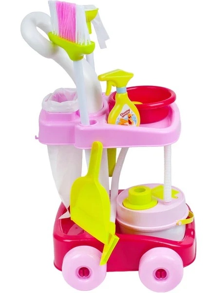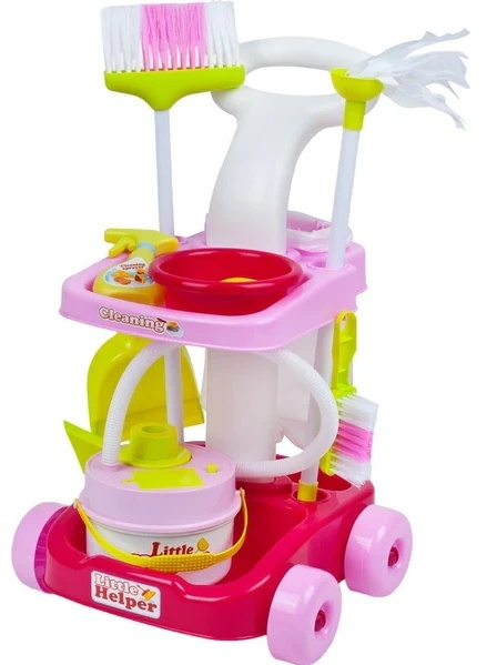 Красивая детская тележка для уборки с пылесосом. Пылесос оснащен мягким шлангом для всасывания мелких шариков полистирола. Рекомендуется для детей от 3 лет и старше.