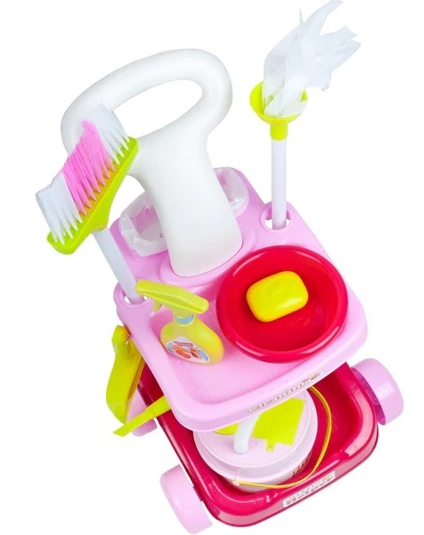 В наборе: пылесос, швабра, совок, метла, ручная щётка, чистящее средство, мыло, полистироловые шарики, пылесос.