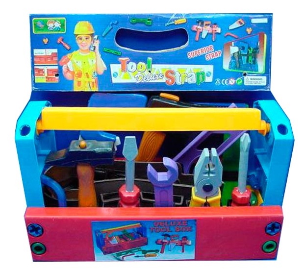 Замечательный набор детских инструментов. В наборе есть: отвертки, гаечный ключ, пассатижи, молоток, пила и другие аксессуары.